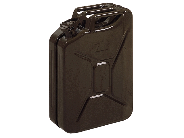 Plaatstaal legergroen, met bajonetsluiting. Goedgekeurd volgens UN-keur.