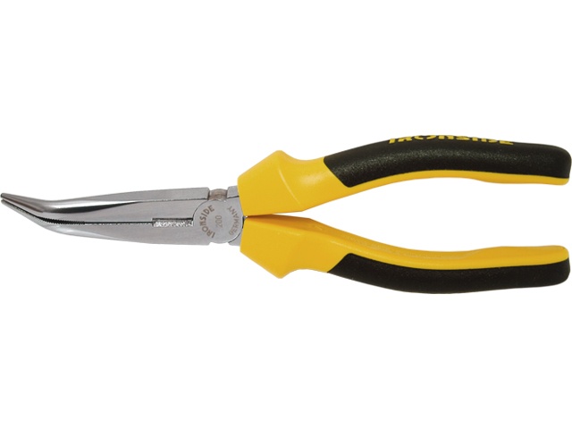 Gebogen model. Voor harde en zachte draad. Met halfronde getande bekken en zijsnijder. Verchroomd met zware twee-componenten handvatten.