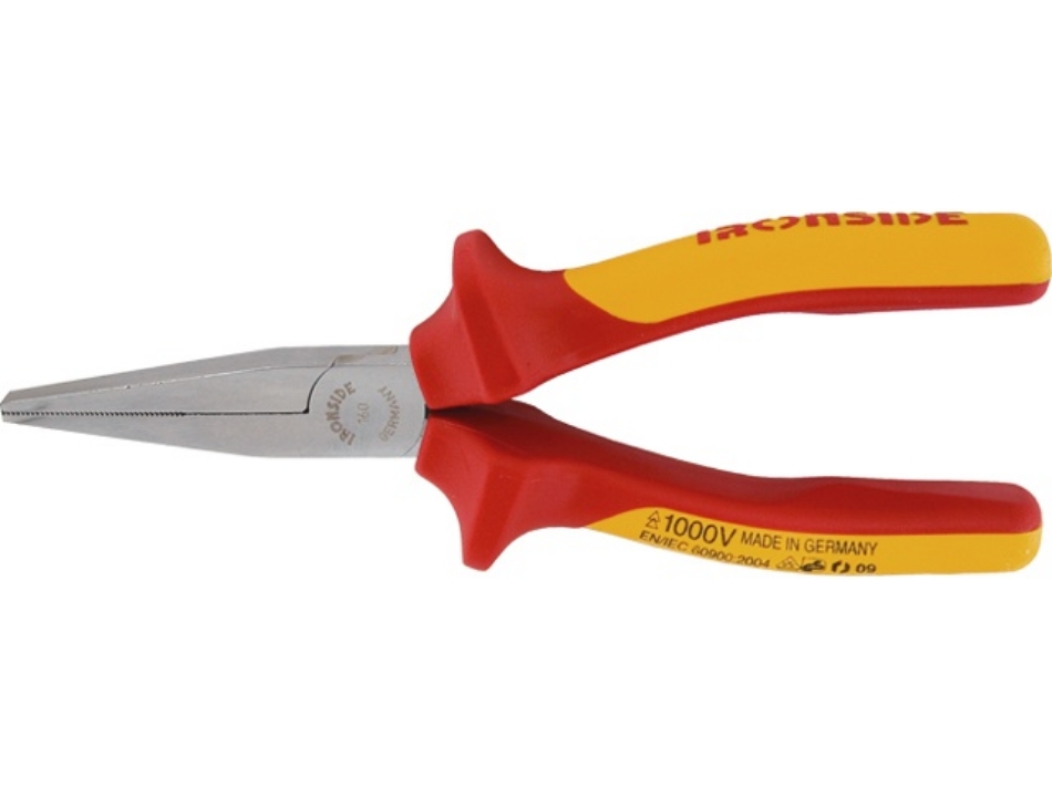 VDE-geïsoleerd 1.000 V. Met korte, platte en getande bekken. Verchroomd met zware twee-componenten handvatten.