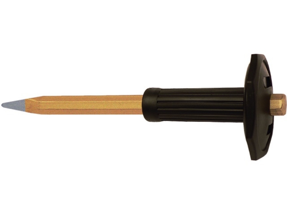Van chroom-vanadiumstaal gesmeed met slagvaste, geharde kop, met handbescherming.