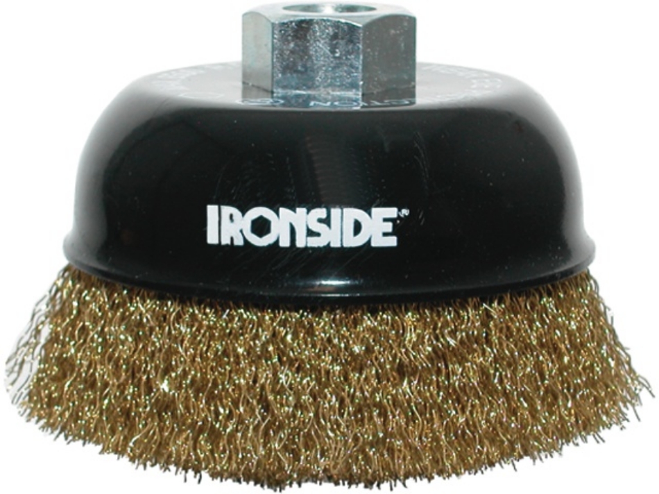 Gegolfd verkoperd staaldraad, draaddikte 0,3 mm. Asgat M14. Geschikt voor haakse slijper.
