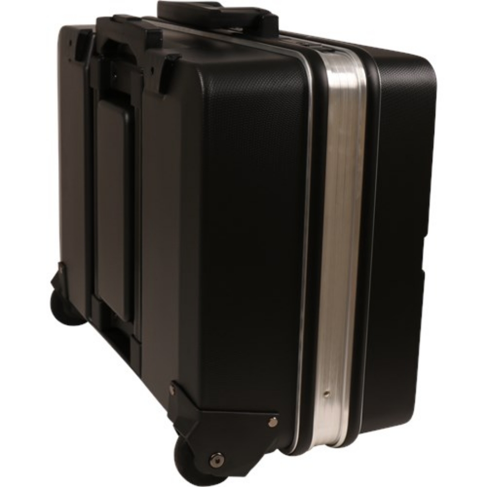 Schalen van ABS-kunststof met robuust aluminium frame. en twee-componenten handvat. Voorzien van twee uitneembare gereedschapsbladen, documenten vak en vrij in deelbaar bodem bak. Met code slot en trolley systeem.