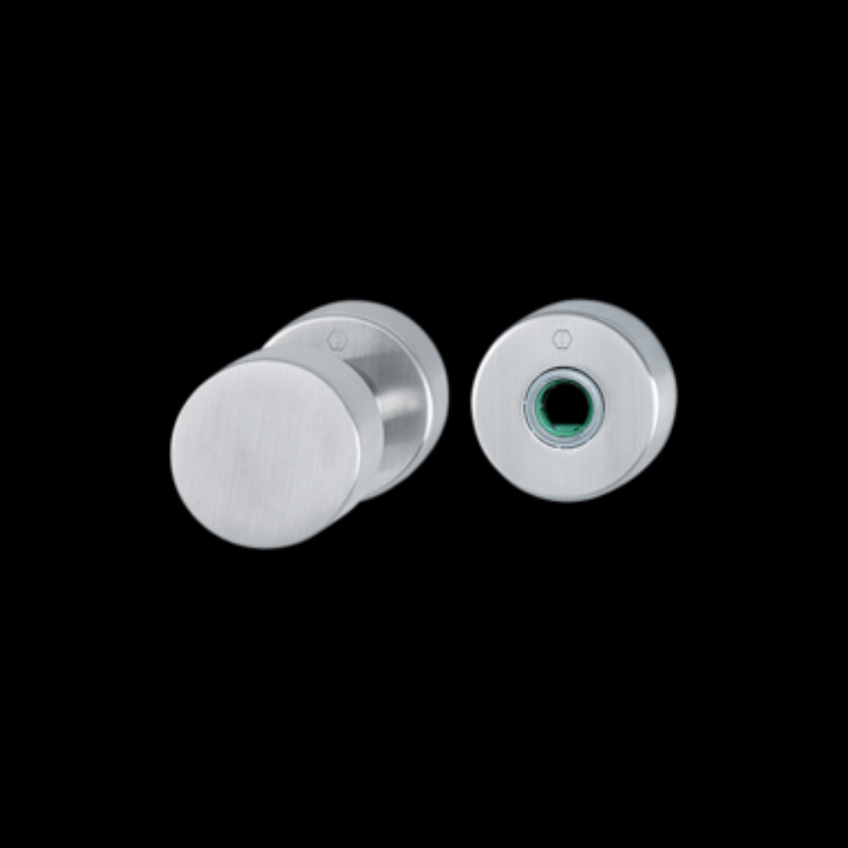 Roestvast stalen rond binnendeur-knoprozet-garnituur, geperste afdekrozetten met stalen onderrozetten, conform DIN EN1906 cat.4, met nokken en onzichtbare, doorgaande boutbevestiging (zelfborgend), inclusief