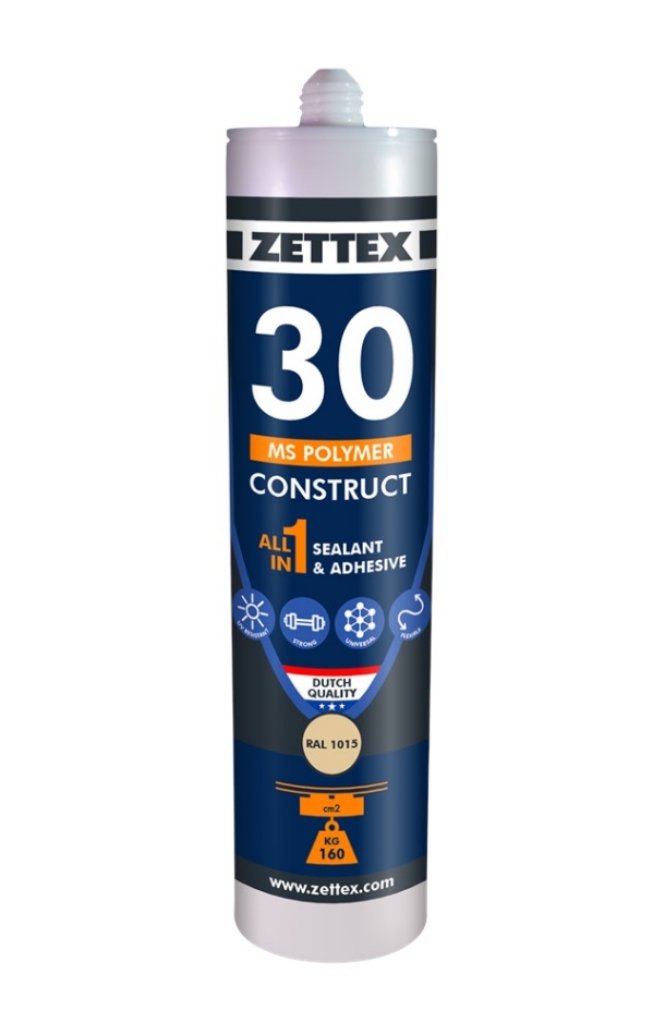 Zettex MS 30 construct is een universele lijm en constructievoegkit voor het verlijmen van alle soorten materialen behalve PE en PP. Zettex MS 30 construct kan toegepast worden op iedere ondergrond; is extreem veelzijdig en is het antwoord voor iedere verlijming