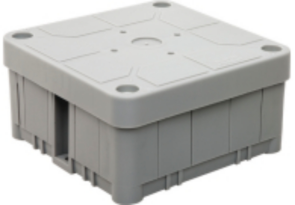 Abb Hafobox 3640 opbouwdoos wand/plafond, kunststof, grijs, (lxbxd) 95x95x45mm, vierkant, universeel, voor buisdiameter 16/19mm, type behuizingsdoorvoer uitbreekpoort, 7 invoeren, oppervlaktebescherming geen (onbehandeld), uitvoering deksel blinddeksel, dekselbevestiging geschroefd, halogeenvrij
