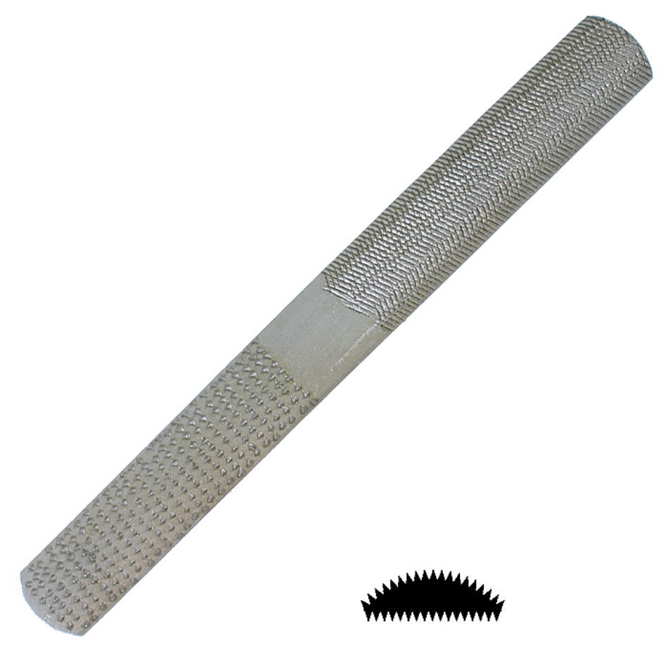 Deze rasp met 4 verschillende kappen wordt ook schoenmakers rasp genoemd door zijn veelzijdigheid. Carbon steel, vorm: halfrond, vlakmodel met gebogen zetting van de tanden, universeel gebruik (hout, leer, kunststof en vinyl).