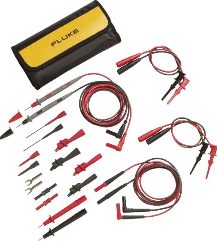 TL81A Elektronica-meetleidingset de luxe 2 Siliconen meetleidingen (rood, zwart), 100 cm Krokodilklemmen en meetpuntenverlenging 2 Modulaire siliconen meetleidingen (rood, zwart), 100 cm 2 Meetpunten 2 Haak- en grijpklemmen IC-meetpuntadapter en kabelschoenen Gevoerde draagtas met vier vakken.
