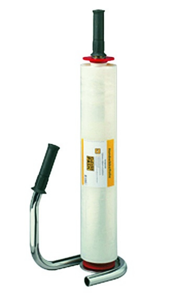 Verchroomd stalen handafrolapparaat geschikt voor stretchfolie handrollen. Ergonomische vormgeving met slipvast rubberen handvat. Eenvoudige montage d.m.v. schroefdraadspindel voor het wisselen van folierollen met een foliebreedte van 45-50 cm. Afneembare rubberen handgreep met rem voor het krachtig inwikkelen.