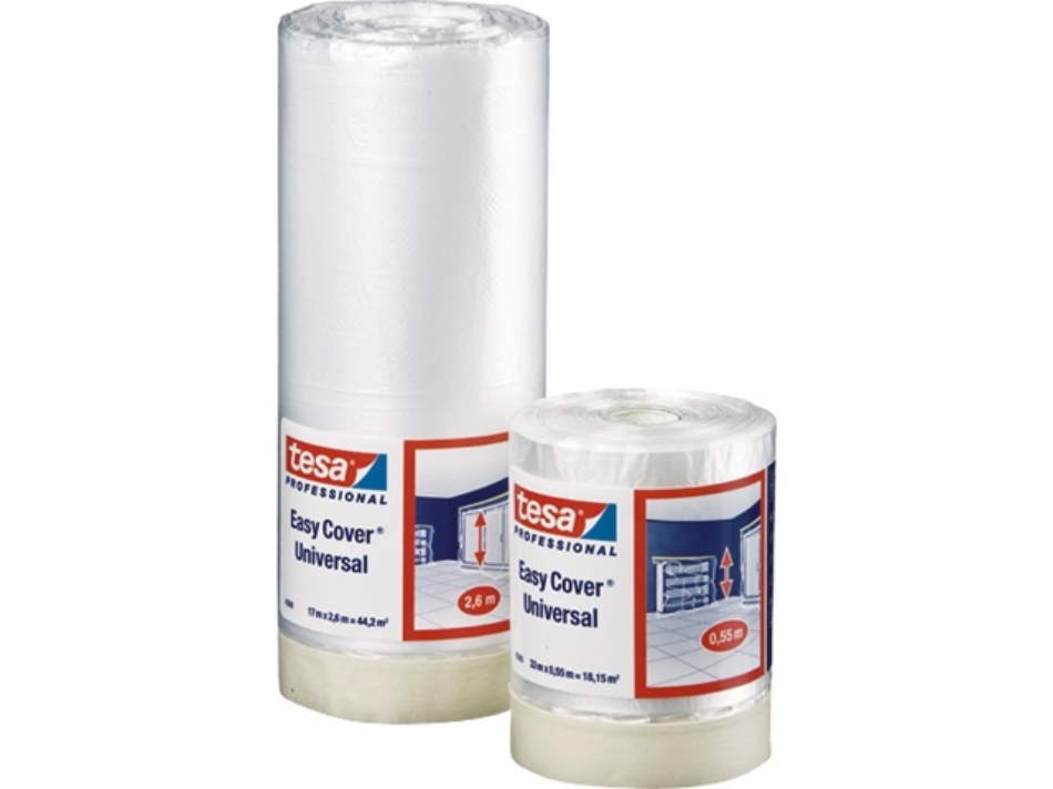 Als u op zoek bent naar een product om u tijd en geld te besparen voor uw professionele binnenschilderwerk, denk dan eens aan tesa EasyCover® 4368 universal. Met tesa Easy Cover® 4368 universal heeft u een slimme 2-in-1 oplossing bestaande uit de hoogkwalitatieve tesa® 4316 maskeringstape en een passende beschermfolie. Dit betekent dat één snelle stap volstaat om verfranden nauwkeurig te maskeren, terwijl u tegelijkertijd grote oppervlakken zoals meubels, vloeren en wanden beschermt. Met de combinatie van de tesa Easy Cover® 4368 universal en uw eigen vakwerk zult u de opdrachten van uw klanten in een mum van tijd met uitstekende resultaten kunnen uitvoeren!