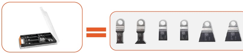 6 verschillende E-Cut zaagbladen t.b.v. SuperCut in een handige opbergkoffer - 1x universal 147, 1x universal 148, 2x Long-Life 164 en 2x Long-Life 165