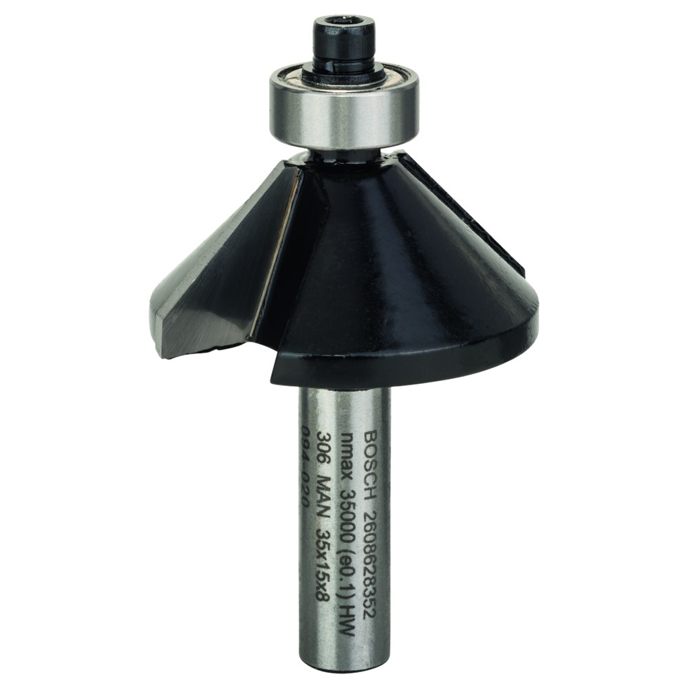 De Standard for Wood 45 graden haakse fasefrees levert hoge prestaties voor consistent afschuinen. De frees is voorzien van hoogwaardige wolfraamcarbide boorkroon voor duurzaamheid en betrouwbare freesresultaten. Verder voorkomt de frees terugslag door de dikte van de gemaakte spaanders te beperken. De frees is bedoeld voor het consistent afschuinen van randen in zacht/hard massief hout en houten composieten. De mate van afschuining is gemakkelijk verstelbaar door de hoogte van de frees aan te passen. Verder is de 45 graden hoek ideaal voor algemene afschuining.