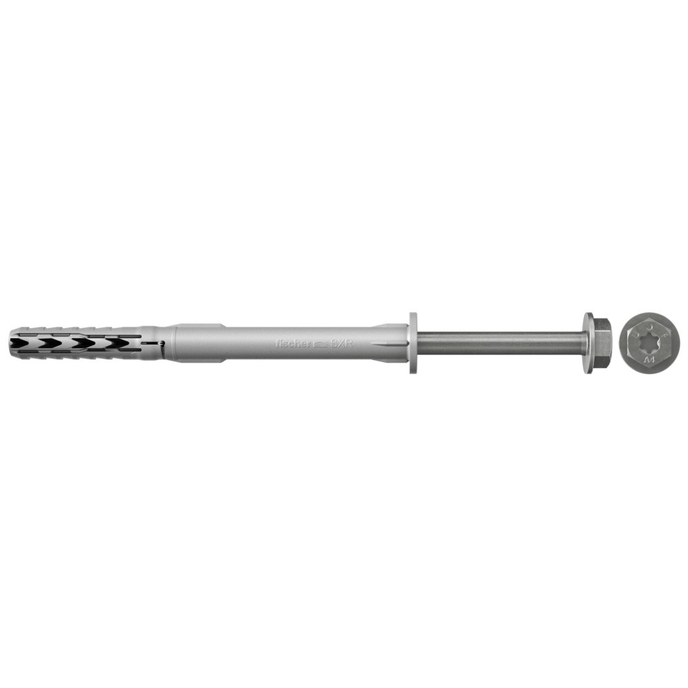 De fischer Constructieplug SXR-FUS A4 is een plug van kwalitatief hoogwaardig nylon met voorgemonteerde fischer zeskante schroef en passende onderlegring. Dankzij de bijzondere geometrie van de plug kan de SXR in massief materiaal en materialen zoals geperforeerde baksteen worden gebruikt. Door de geringe verankeringsdiepte van slechts 50 mm kan de constructieplug in het bijzonder bij meervoudige bevestigingen van niet-dragende systemen op zeer efficiƫnte wijze worden verwerkt. De fischer Constructieplug SXR-FUS A4 met de zeskante schroef en passende onderlegring wordt vooral aanbevolen voor de bevestiging van metaalconstructies.