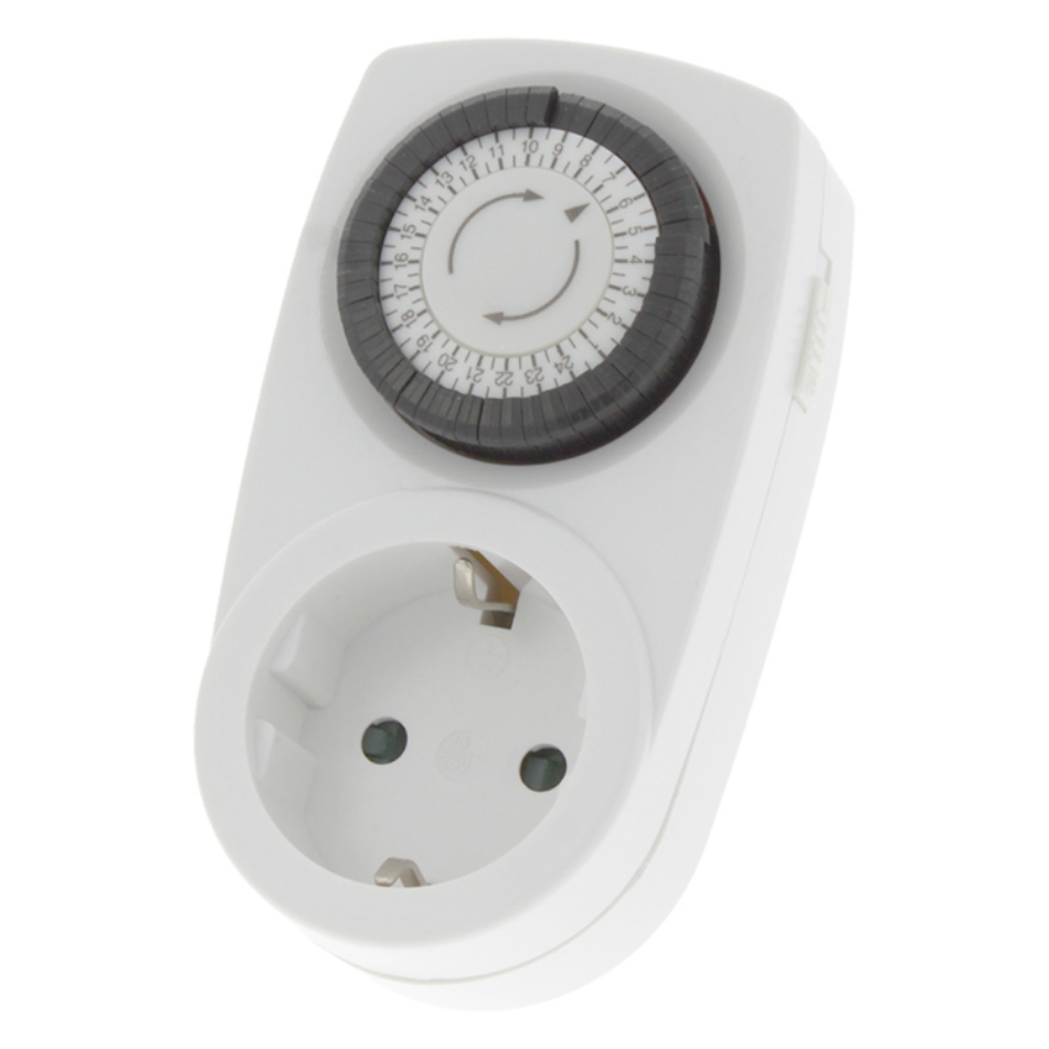 Met dagprogramma, vaste ruiters, 48 schakelmomenten per dag mogelijk, kleinste schakeltijd 30 minuten, maximaal 16 Amp. ( 3680 Watt). Met kinderbeveiliging
