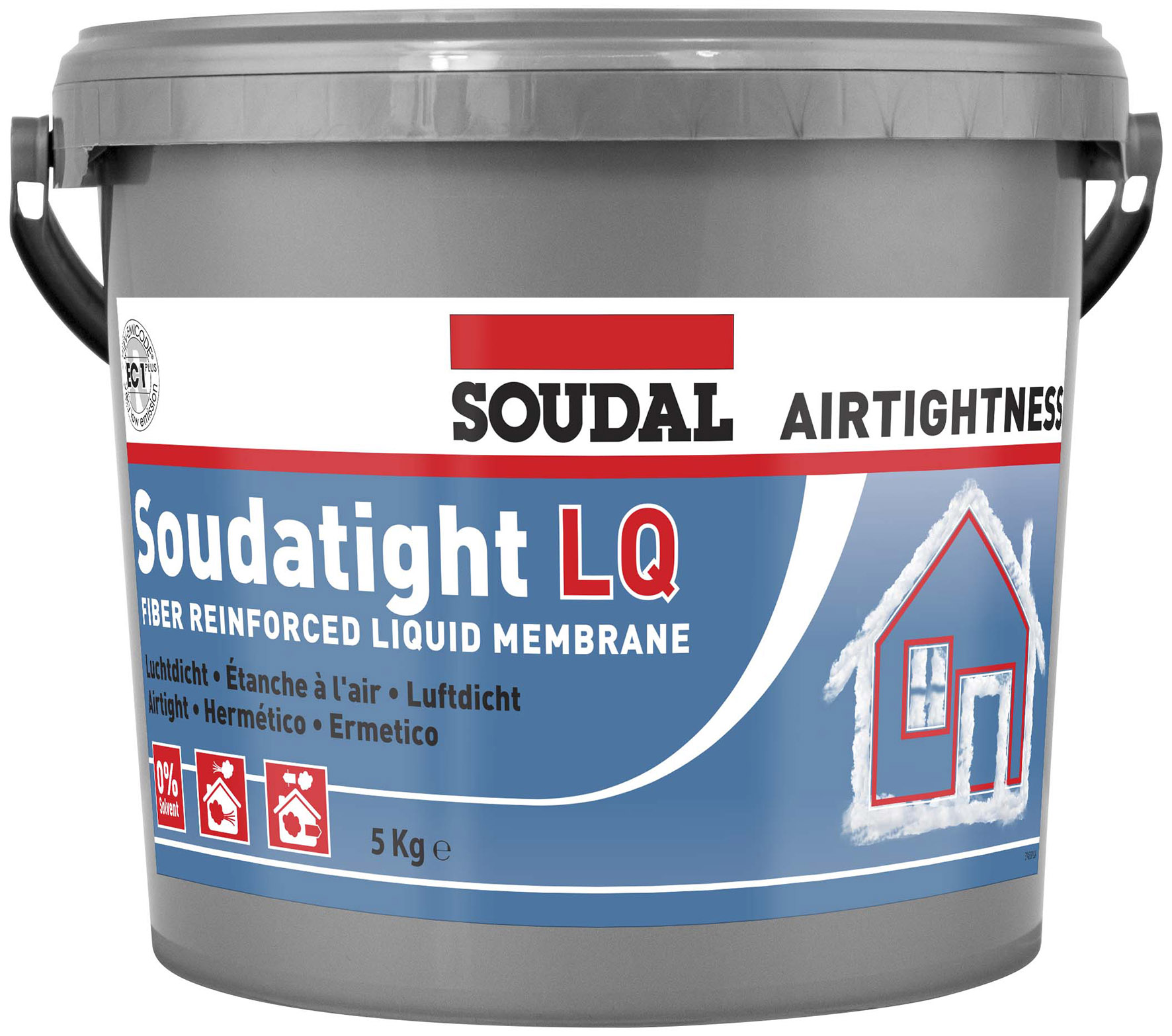 Soudatight LQ is een hoogwaardig vezelversterkte polymeerpasta die na droging een naadloos luchten dampdicht elastisch membraan vormt. Gebruik Soudatight LQ voor het lucht- en dampdicht afwerken van doorvoeren, raam-, vloer-wand-, wand-plafond- en dakaansluitingen. Het product kan zeer eenvoudig met een platte kwast aangebracht worden.