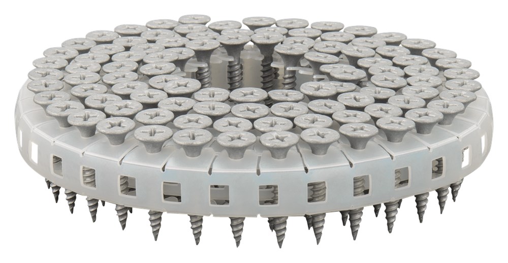 Makita gefosfateerde gipsplaatschroeven op plasticrol met fijne draad. Geschikt voor gipsplaat op metal-stud. Prijzen zijn aan verandering onderhevig. Geschikt om een enkele 9,5 mm gipsplaat op een metal stud constructie te bevestigen.