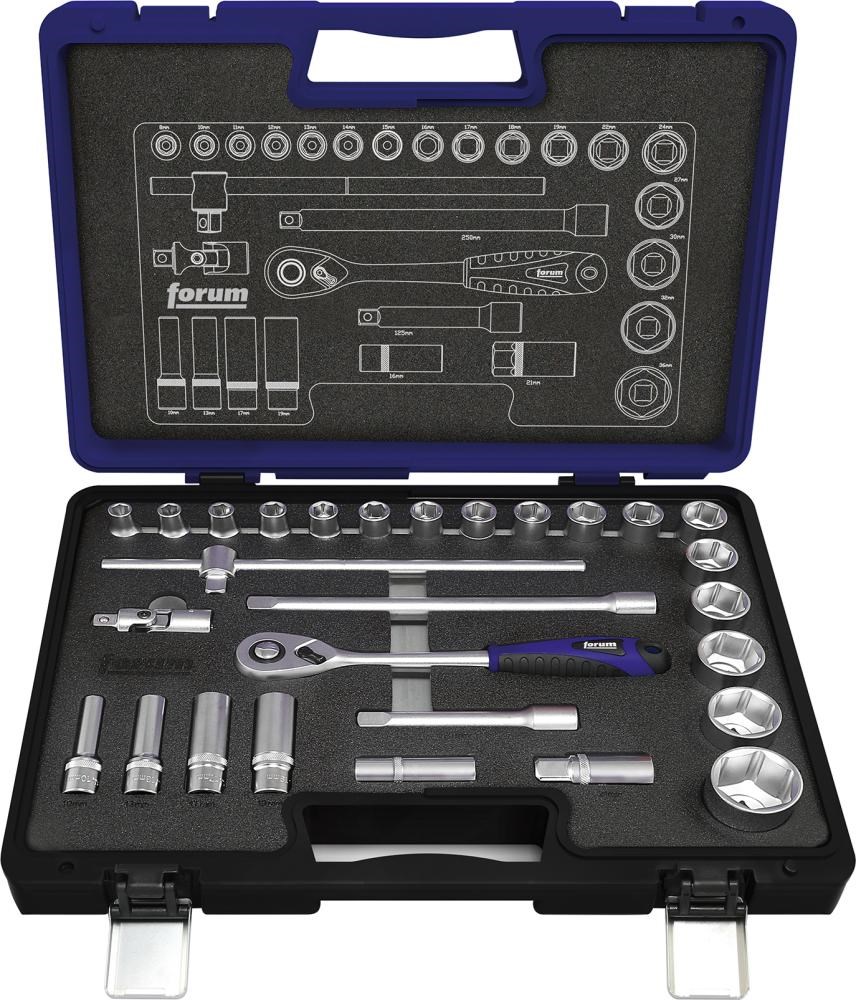 17 dopsleutels 8; 10; 11; 12; 13; 14; 15; 16; 17; 18; 19; 22; 24; 27; 30; 32; 36 mm