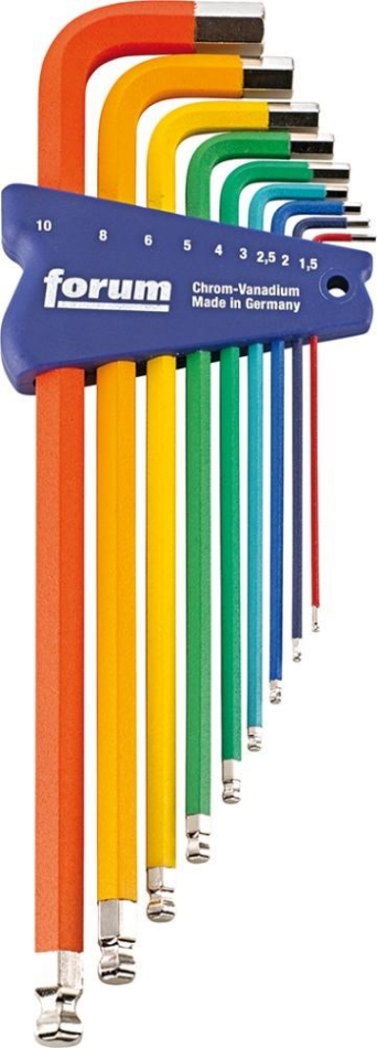 FORUM Haakse stiftsleutelset voor binnen-zeskantschroeven, met kogelkop en kleurcode 9dlg