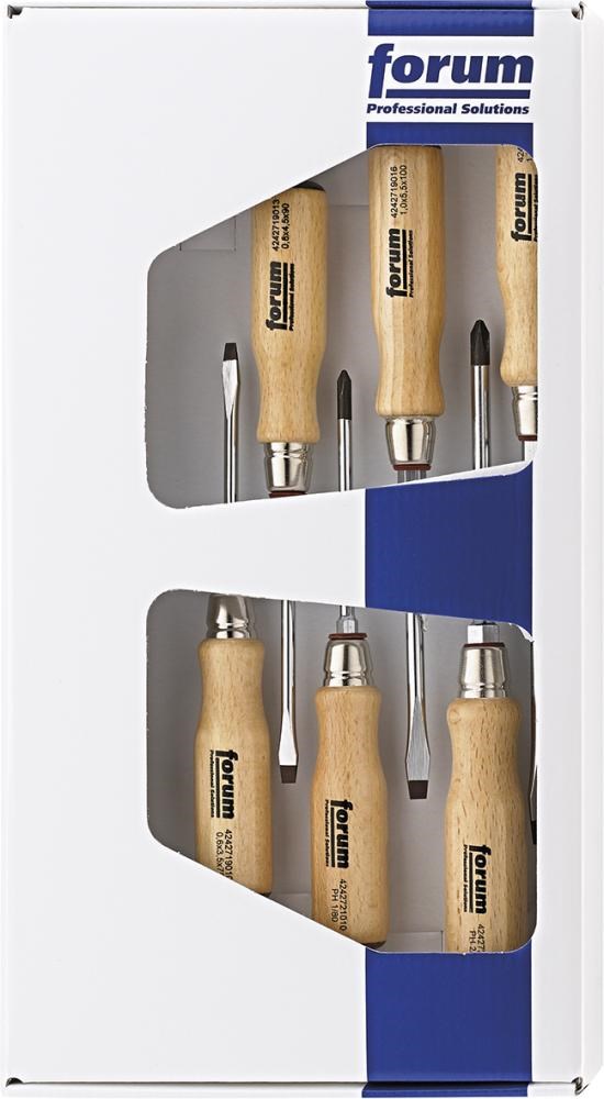 FORUM Schroevendraaierset voor sleuf- en kruiskopschroeven PZ houten handvat 6 stuks