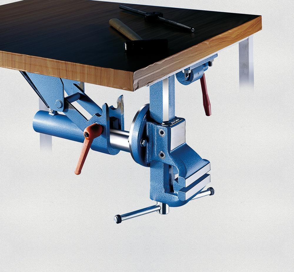 Gemonteerde bankschroef kan 360° worden gedraaid