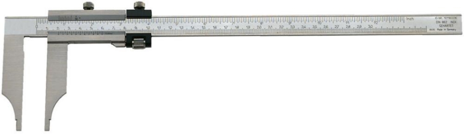 Werkplaatsschuifmaat zonder punten, met extra lange meetbekken