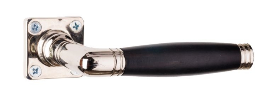 Een veel gebruikt model deurkruk in de jaren 30 is het Ton model. Deze klassieke deurkruk in nikkel wordt naderhand gepolijst, waardoor deze een glanzende uitstraling krijgt. De combinatie met de ebbenhouten handgreep, maakt deze deurkruk bijzonder. Deze kruk kan eindeloos gecombineerd worden met rozetten of schilden.