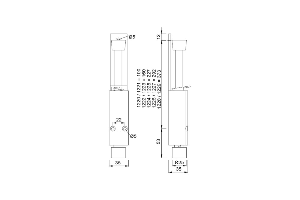 De deur kan in elke openingshoek worden vergrendeld. Om de deur te vergrendelen drukt u de loopgrendel naar beneden tot de aanslag op de vloer. Door lichte druk op de sluitplaat wordt de deur weer vrijgegeven. De standaard tegendrukveer verhoogt de contactdruk op de vloer.