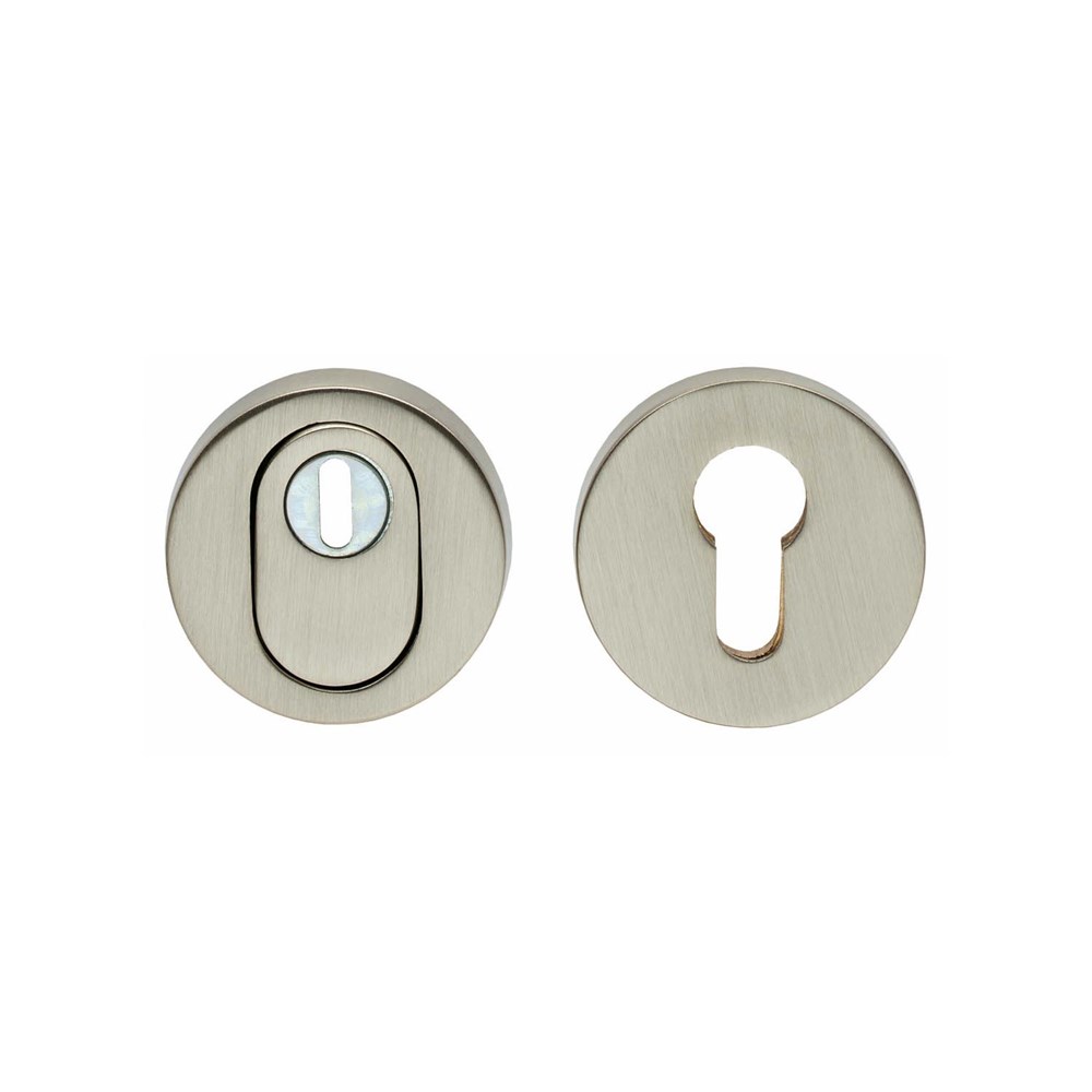 Mat nikkel set veiligheidsrozetten met een bescherming tegen cilindertrekken. Dit product wordt naderhand geborsteld waardoor de set een mat uiterlijk krijgt. Het veiligheidsbeslag is voorzien van kerntrekbeveiliging, waardoor de cilinder wordt beschermd tegen het uittrekken en uitboren van de cilinderkern. Kerntrekbeveiliging is sinds eind 2013 verplicht in nieuwbouw en sinds april 2014 ook voor bestaande bouw. Het veiligheidsbeslag is daarnaast SKG*** gekeurd, wat betekent dat het om extra zwaar inbraakwerend beslag gaat. Ook voldoet deze set veiligheidsrozetten aan het Politie Keurmerk Veilig Wonen (PKVW).