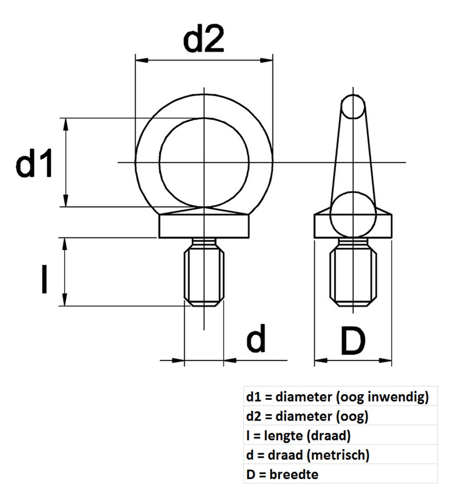 Elektrolytisch verzinkt, kwaliteit C15. Volgens DIN 580.