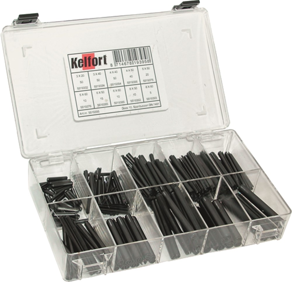 Transparante kunststof doos, 10 vaks. Afmeting 218x142x42 mm.