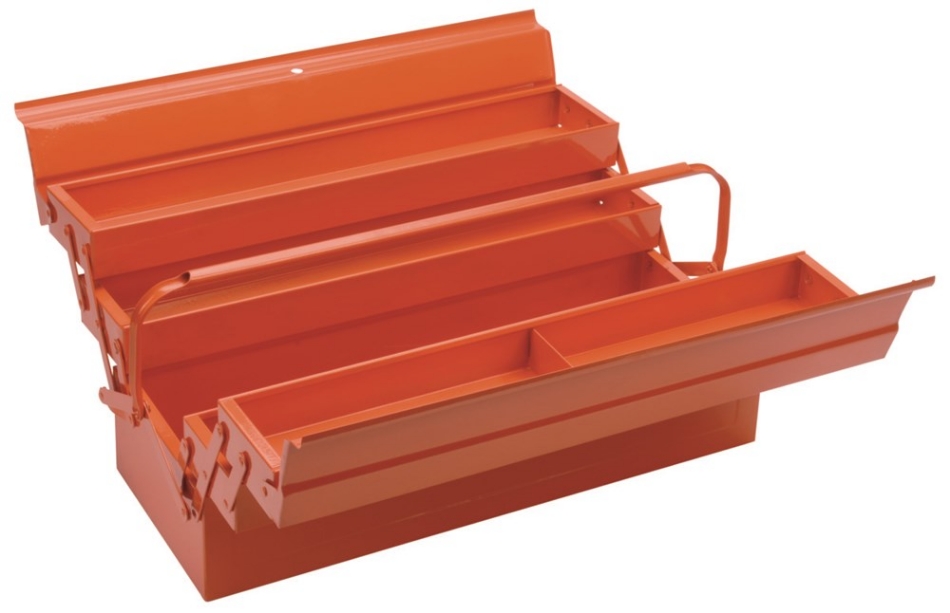 Door aan de handgreep te trekken gaat de gereedschapskist naar beide kanten gemakkelijk open en heeft men toegang tot alle vakken
