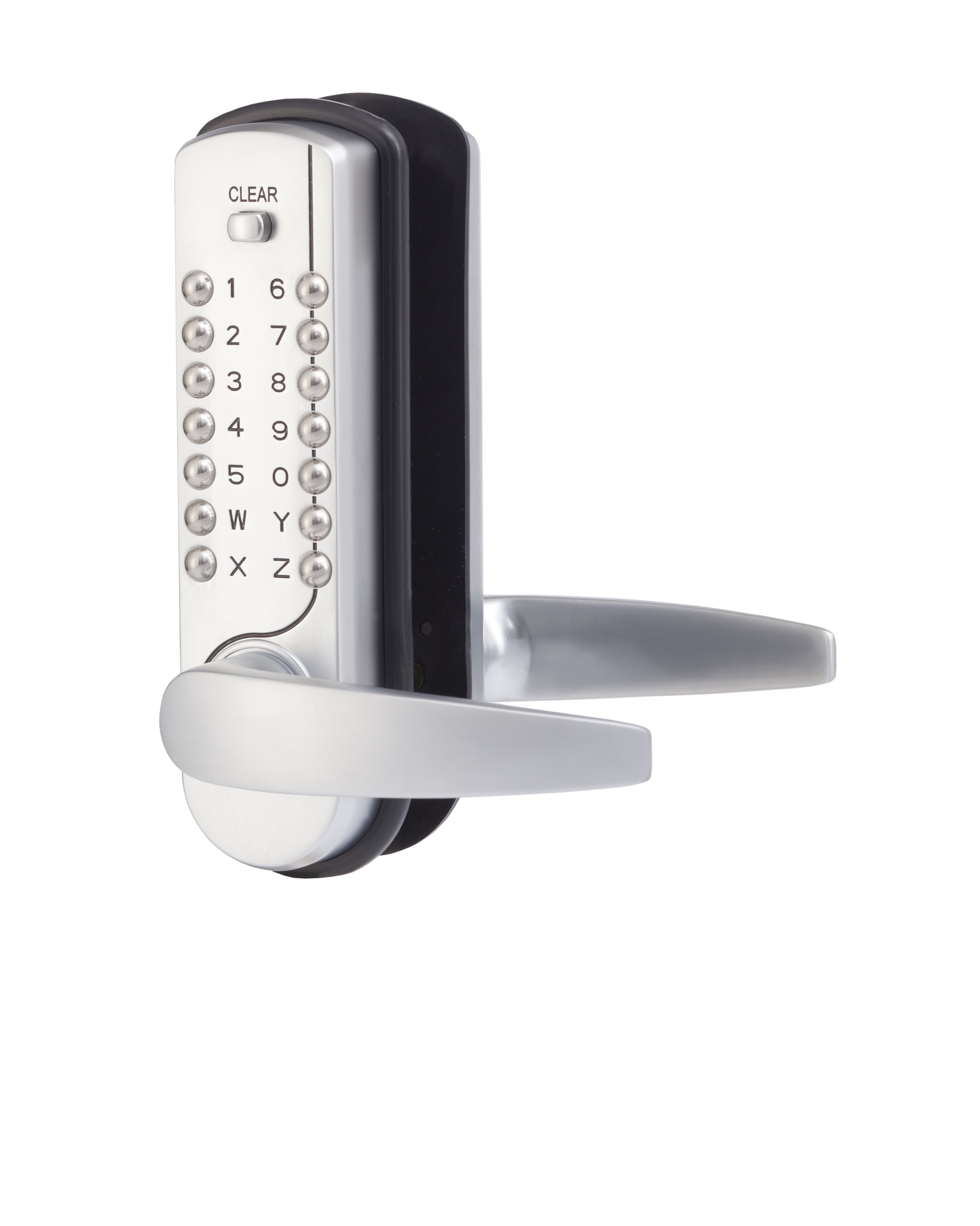 Deze stijlvolle en robuuste mechanische codesloten zijn toe te passen op bestaande DIN sloten. Door het intoetsen van de juiste code is de kruk te bedienen en kan de deur worden geopend. Na het openen van de deur vergrendelt deze na het sluiten automatisch. Vanuit de binnenzijde is de deur altijd via de kruk mechanisch te openen.