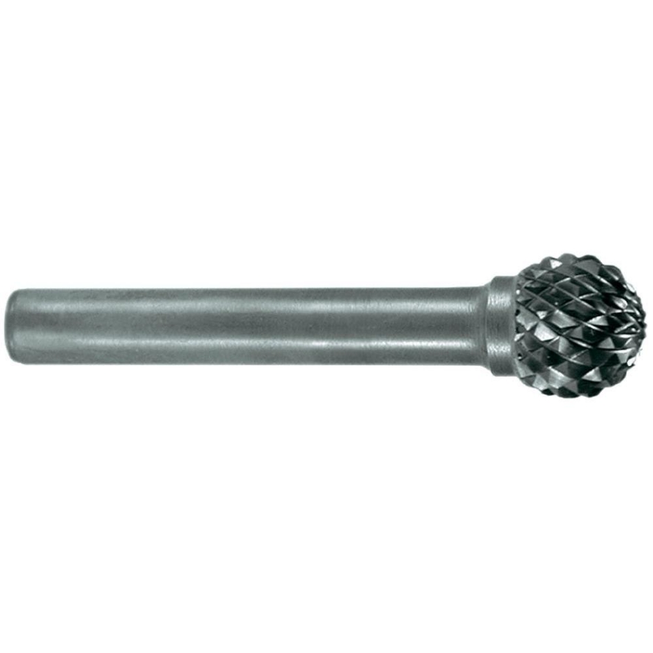 Ronde walsvormige stiftfrees volgens DIN 8032 met vertanding volgens DIN 8033. Combinatie van cilindrische en kogelvormige geometrieën. GL = totale lengte (vol hardmetaal) SL = stiftlengte (lange stalen stift)
