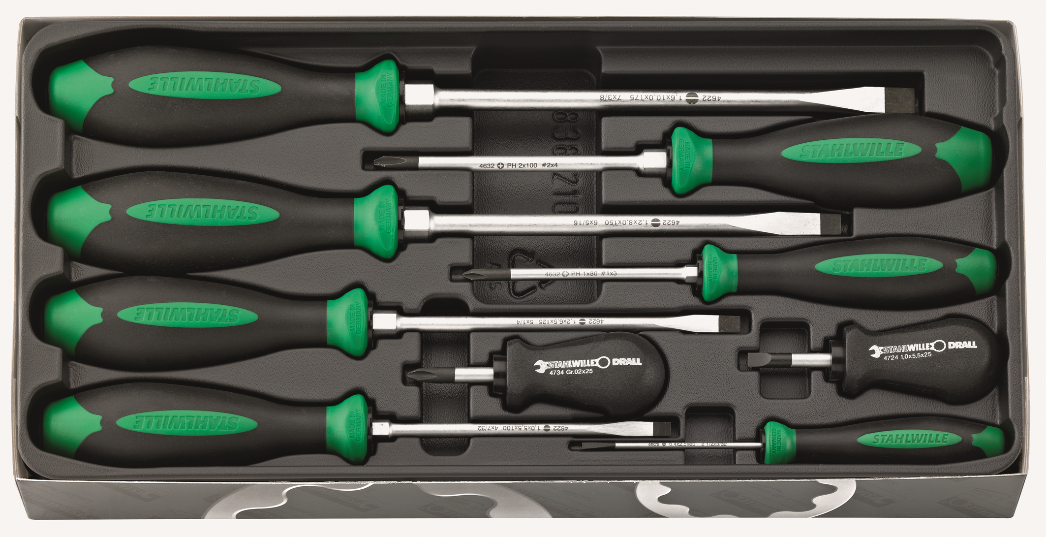 9-delig, inhoud: 4622: gr. 1 (1,0 x 5,5 x 100 mm), gr. 2 (1,2 x 6,5 x 125 mm), gr. 3 (1,2 x 8,0 x 150 mm), gr. 4 (1,6 x 10,0 x 175 mm); 4628: gr. 1 (0,4 x 2,5 x 60 mm); 4632: gr.1; gr. 2; 4724: gr. 2 (1,0 x 5,5 x 25 mm); 4734: gr. 2.