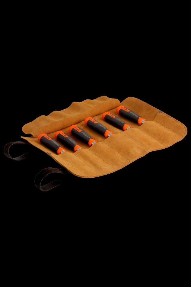 ERGOâ„¢ splitproof steekbeitelset - 6 stuks in een lederen roltas