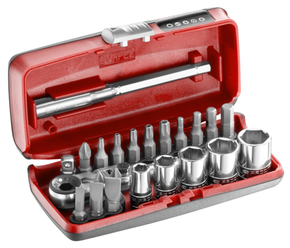 Doppenset 6 kant 1/4" met ratel met 180° flexibele kop.