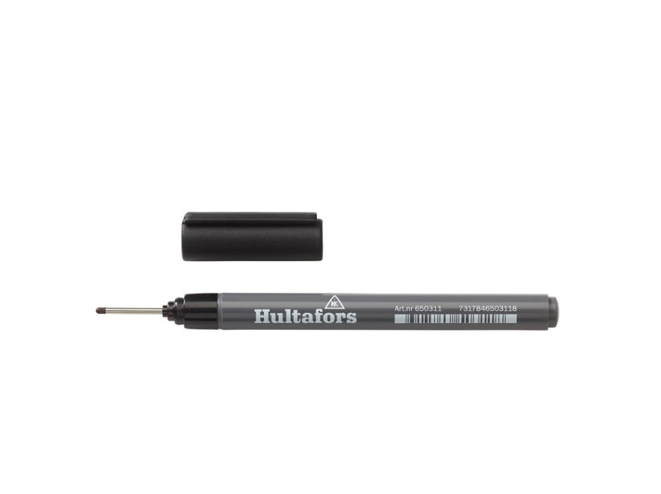 Onmisbaar als je vaak aftekent op lastige plekken zoals in diepe gaten of plaatsen waar je nét niet bij kunt. De Hultafors Aftekenstift is aangepast voor markeren van moeilijk bereikbare plaatsen en in nauwe gaten. Verkrijgbaar in permanente rode en zwarte inkt voor gebruik op de meeste materialen en oppervlakken.