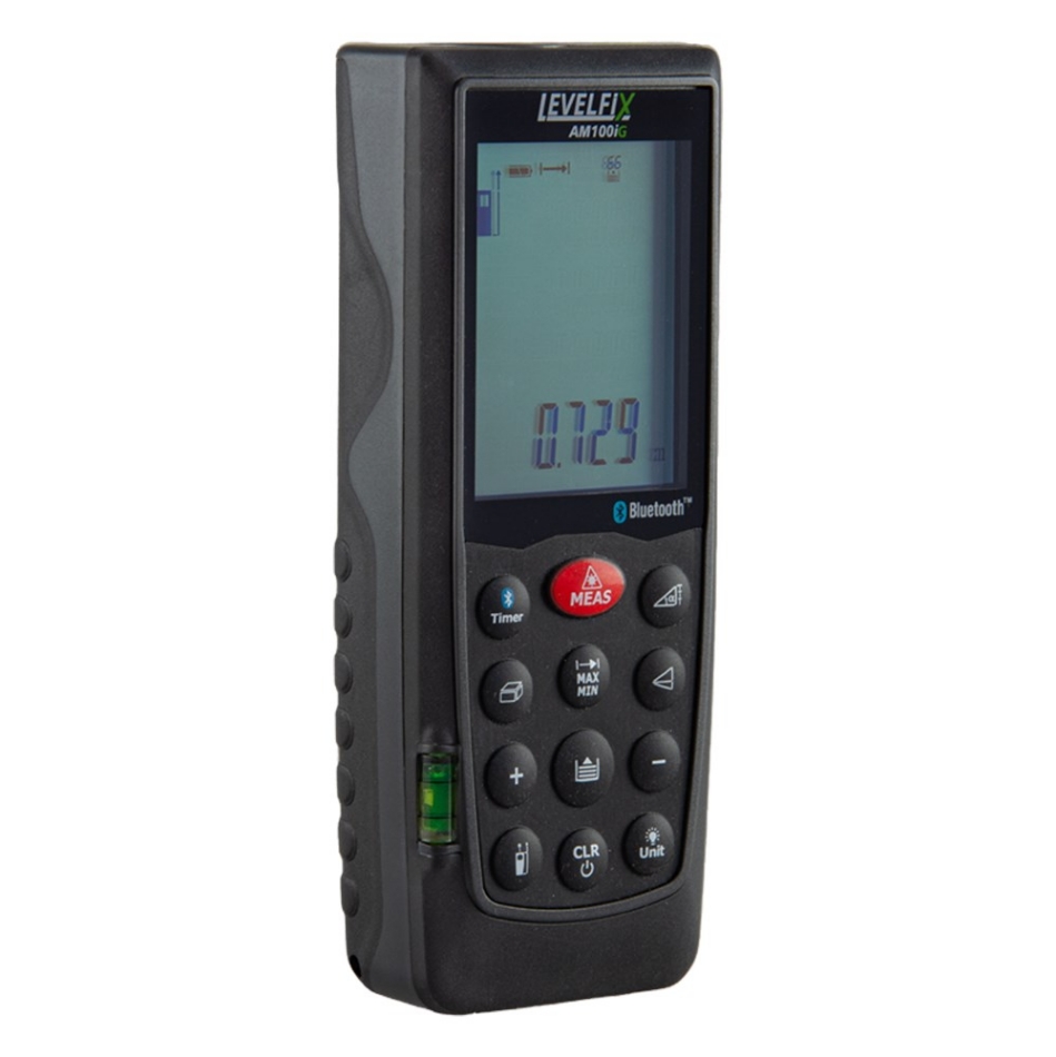 De METOFIX AM100iG is een slimme, digitale afstandmeter. In een handomdraai meet je binnen en buiten afstanden tot 100 meter. Staat er een obstakel in de weg? Dan richt je de afstandmeter simpelweg op een punt boven het referentiepunt. Dankzij de ingebouwde hoekmeter berekent de AM100iG de juiste afstand voor je. Zo heb je in alle omstandigheden een nauwkeurige meting.