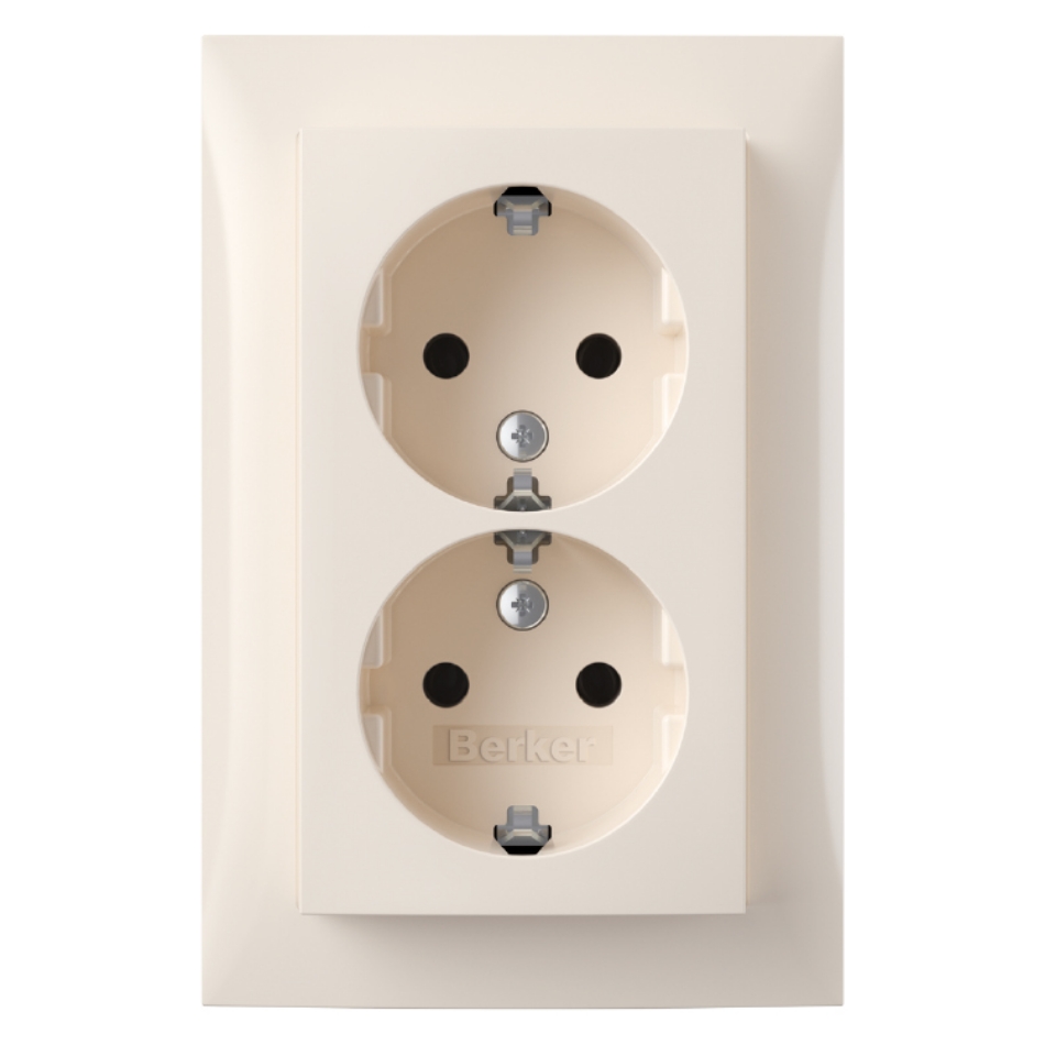 Berker S1 contactdoos inbouw, 2-voudig, randaarde crème