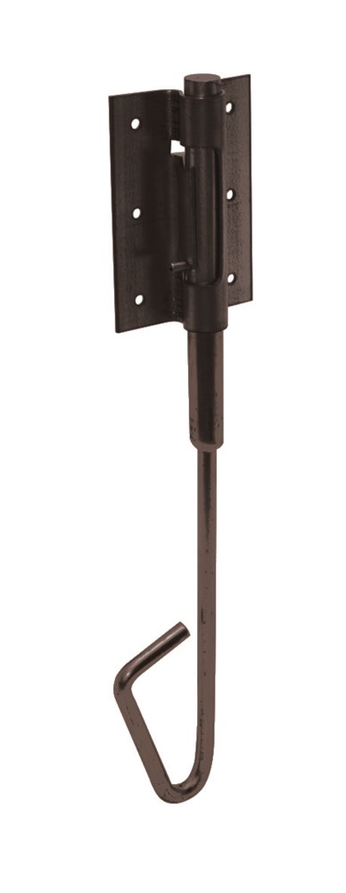 Staartgrendel voor het vastzetten van grote deuren waarbij de pen tot 50 mm in het plafond of een balk boven de deur wordt vastgezet.