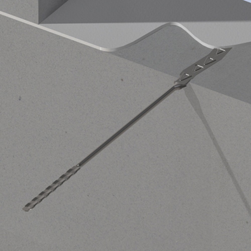 Spouwanker met platte inleg dat in een voeg (minimale dikte 2 mm) van de kalkzandsteen binnenmuur wordt gelijmd, waarna de isolatie erop wordt geprikt (en met behulp van een isolatie clip op de juiste plaats wordt gehouden) en vervolgens met het platte uiteinde wordt gelijmd of gemetseld in de voeg (minimale dikte 3 mm) van de buitenmuur.