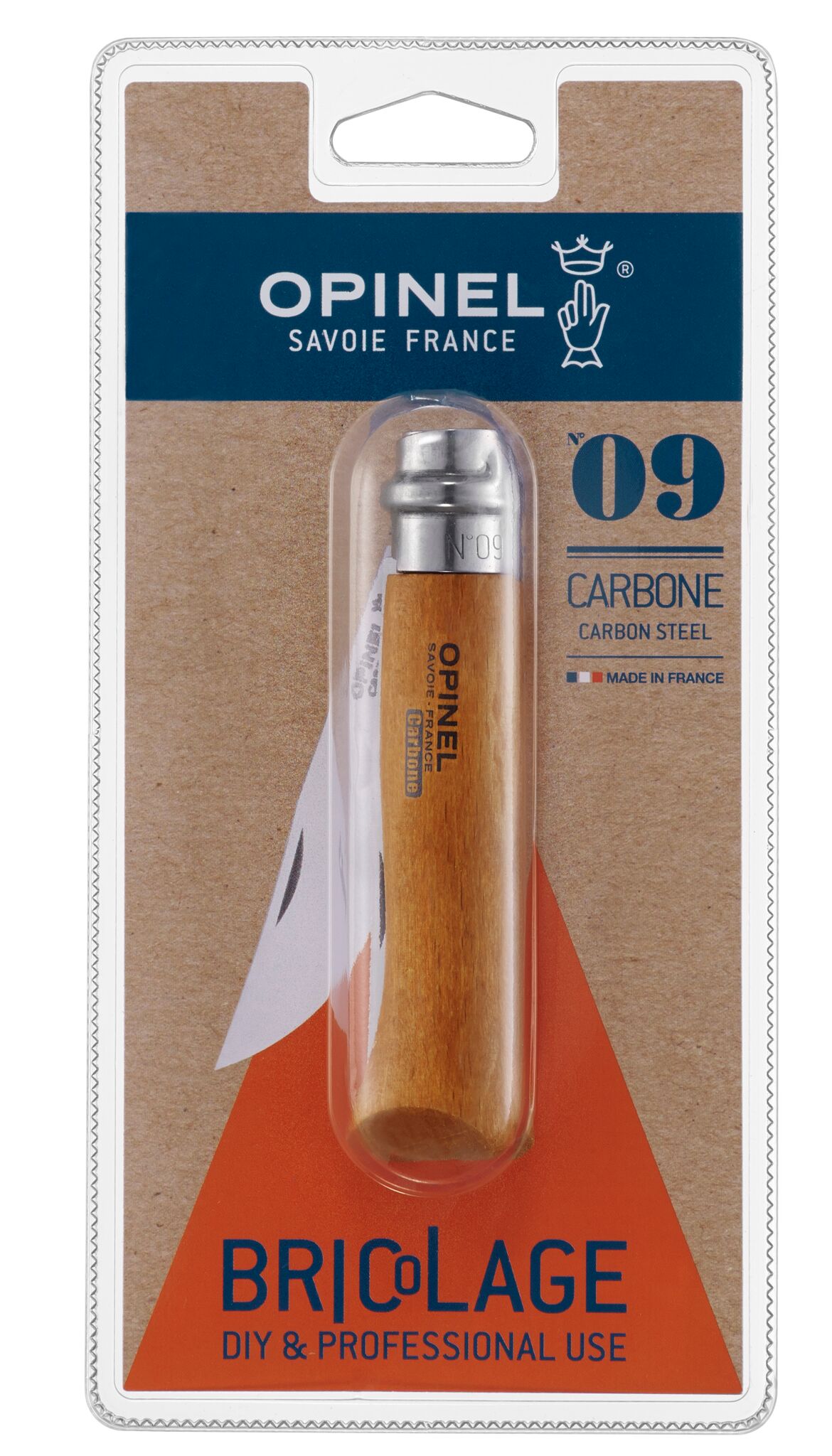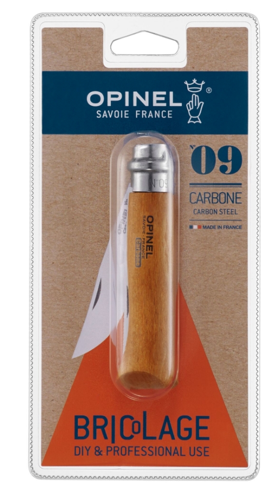 Zakmes nr.09 Carbon,Opinel Classic Lemmet niet RVS. Heft van beukenhout.