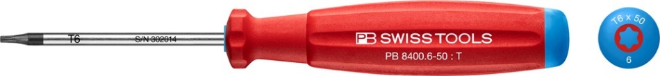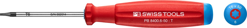 SwissGrip schroevendraaier voor Torx®-schroeven, bolrond hecht met zachte oppervlakte voor hoge draaimomenten. Kleurcodering naar schroeftype, snelle herkenning. Maatnauwkeurige punt, optimale passing in de schroeven. Groottes 27 - 40 met zeskant.