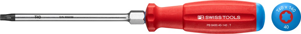 SwissGrip schroevendraaier voor Torx®-schroeven, bolrond hecht met zachte oppervlakte voor hoge draaimomenten. Kleurcodering naar schroeftype, snelle herkenning. Maatnauwkeurige punt, optimale passing in de schroeven. Groottes 27 - 40 met zeskant.
