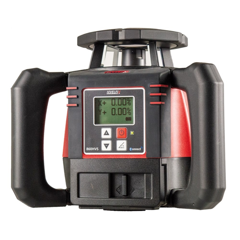 De slimme digitale afschotlaserHet afschot kan op de 860HVS, welke voorzien is van een groot en helder display, digitaal ingesteld worden op beide assen. De SmartSlope technologie zorgt voor een gecontroleerde afschot met HI protectie en houdt temperatuurschommeling in de gaten. Uitlijnen wordt kinderspel, de unieke Auto-Alignment functie op zowel de x als de y-as zorgt ervoor dat de laser zelf het midden zoekt van de ontvanger. Plaats de ontvanger op hoogte en met slechts één druk op de knop zal de laser de ontvanger zelf opzoeken en is een afschot ingesteld. Het hoge instelbare toerental van 1200rpm maakt de laser ideaal voor gebruik met machineontvangers. Daarnaast is de 860HVS voorzien van een vensteruitschakeling (het “blinderen” van bepaalde zijdes). Deze functie zorgt ervoor dat u de laser ook kunt gebruiken waar weerkaatsing van de laserstraal op kan treden. U schakelt de zijde eenvoudig uit welke een weerspiegeling veroorzaakt bij raampartijen of reflecterende materialen, of waar de laserstraal niet detecteerbaar hoort te zijn.