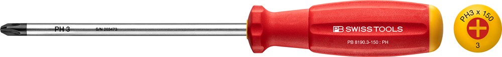 SwissGrip schroevendraaier voor Phillips-schroeven. Bolrond hecht met zachte oppervlakte voor hoge draaimomenten. Kleurcodering naar schroeftype, snelle herkenning. Precieze en maatnauwkeurige punt, optimale passing in de schroeven.