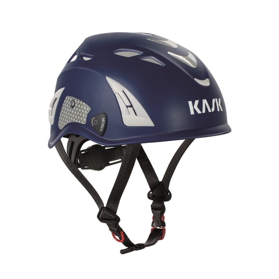 Veiligheidshelm voor industrieel gebruik en werkzaamheden op hoogte met reflectiestrips