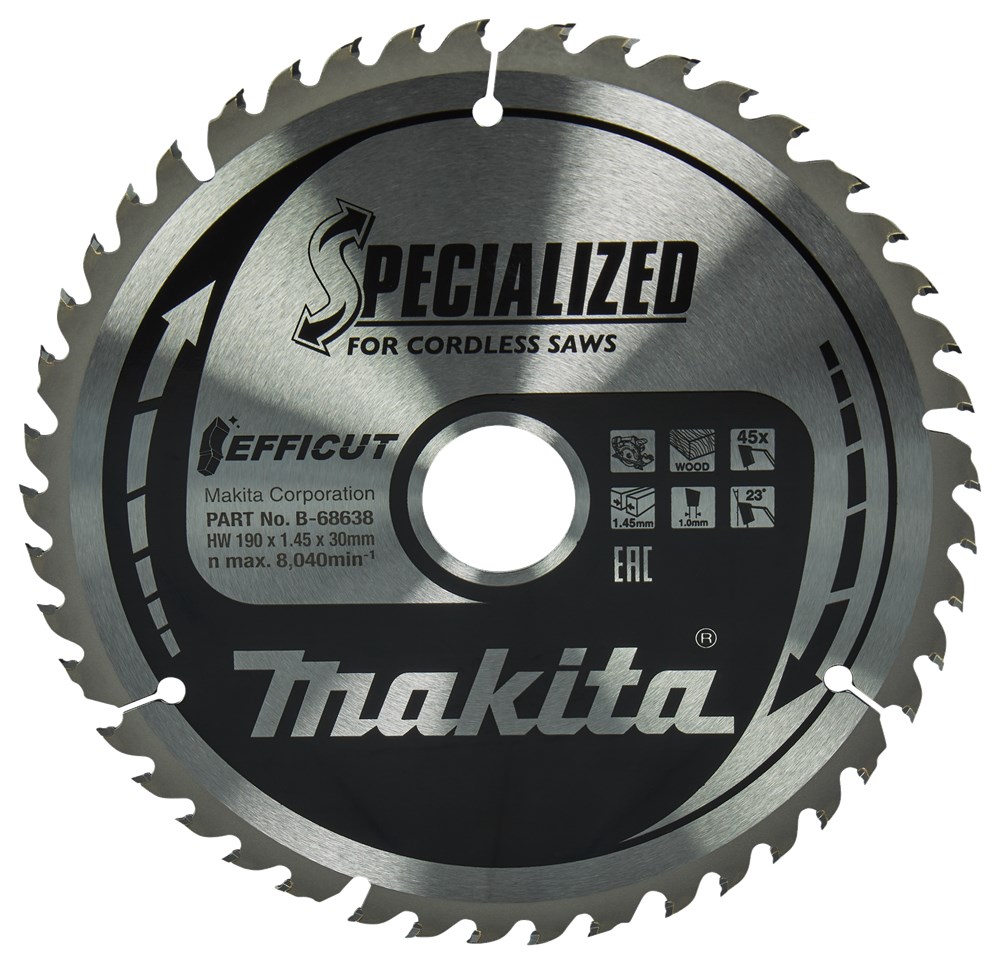 Makita heeft een uitgebreid assortiment cirkelzaagbladen voor de diverse machines. Kies een zaagblad voor het te zagen materiaal en passend op de te gebruiken machine; er zijn verschillende kwaliteiten, waarbij de Makita Efficut zaagbladen tot het top segment behoren. Voor meer informatie omtrent cirkelzaagbladen zie het Makita kenniscentrum: https://www.makita.nl/kenniscentrum/cirkelzaagbladen-en-de-technieken-erachter.html Het Efficut zaagblad is een bijzonder efficiënt cirkelzaagblad dankzij een nieuw tandontwerp. De tand heeft namelijk een holle uitsnede. Hierdoor heeft de tand een kleiner raakvlak met het te verspanen materiaal, is hij scherper én kan hij door de holling de verspaning beter kwijt. Tevens voorzien van lasersleuven voor een reductie in trillingen en geluid en voorzien van een teflon coating tegen roestvorming en tegen het kleven van lijmhoudende materialen. Deze technieken én een bladdikte van slechts 1 mm zorgen voor snel en efficiënt zagen met aanzienlijk minder stofproductie van: - Gemelamineerde spaanplaat; - MDF; - Laminaat; - Hout.