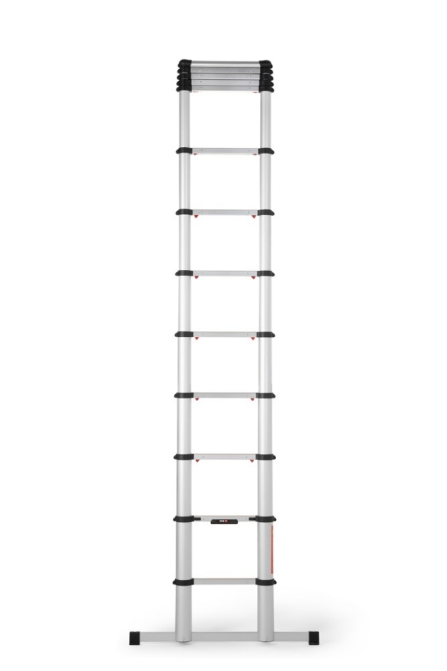 Eenvoudig vergrendelingssysteem met slechts twee knoppen. Groot en klein, maar toch eenvoudig en gebruiksvriendelijk in het gebruik zonder afbreuk te doen aan de kwaliteit of veiligheid. De Eco Line heeft het elegante luchtdempingssysteem ingebouwd om het knijpen met de vingers te minimaliseren en voor een gecontroleerd sluiten van de ladder. Het is niet alleen veilig, maar maakt de ladder ook gemakkelijker te gebruiken.