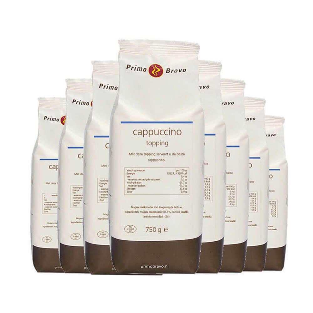 Primo Bravo Cappuccino topping 750g is essentieel onderdeel voor de lekkerste cappuccino op het werk.