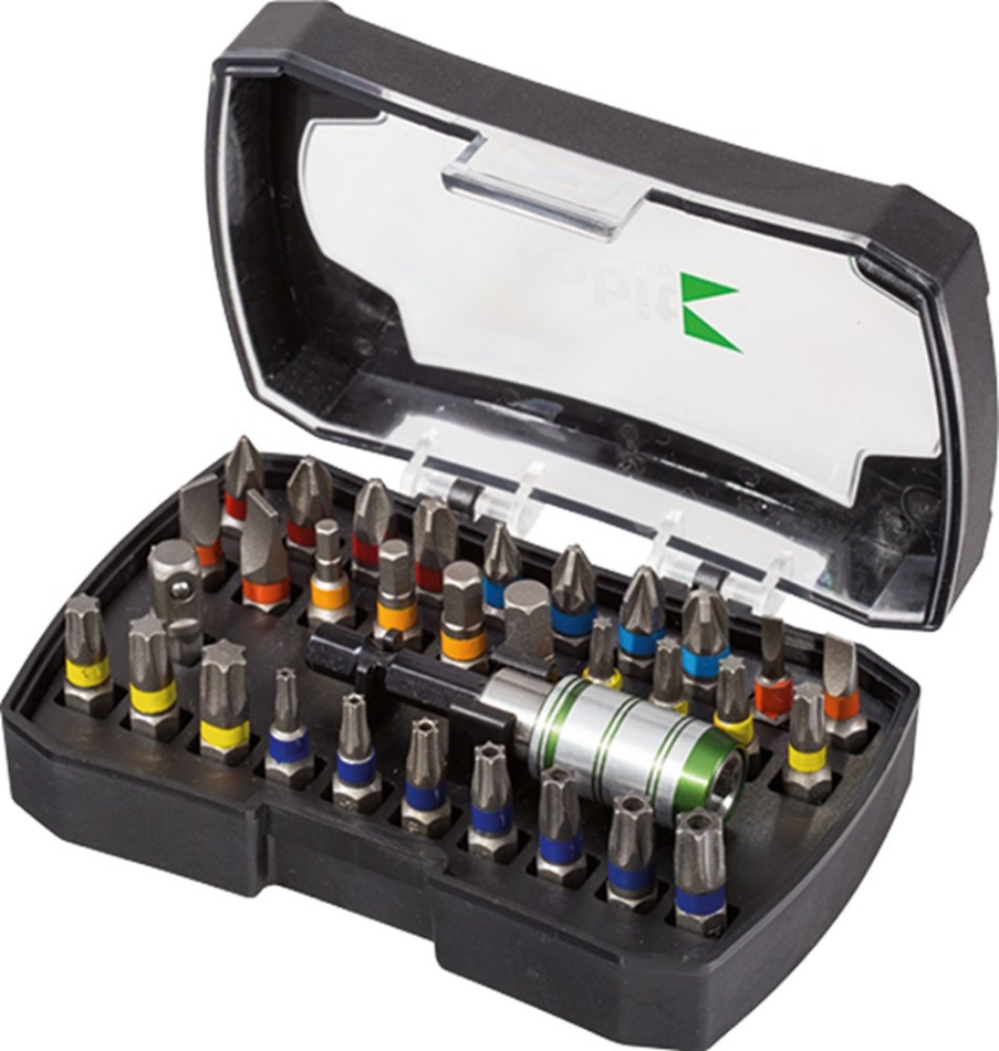 Bitset 1/4'' 32-dlg, PZ, PH, SL, TX, Inbus, met kleurcode.